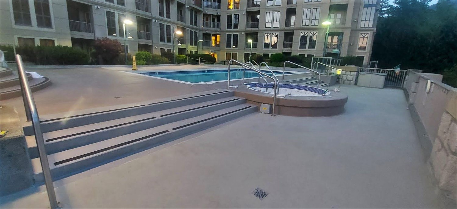 Projects Previous Next Pan Pacific Whistler Mountainside, Whistler BC – Pool and Spa Decks Repairs and Resurfacing Polyaspartic resin system in two quartz colour patterns complete with the sand broadcast over all existing pool and spa decks flooring. Previous Next Private house pool in West Vancouver Epoxy gravel system. Previous Next Private house on Falcon Road, West Vancouver, BC - Epoxy Gravel Pool Deck Resurfacing Clear epoxy resin layers complete with blended colored quartz sand mix and broadcast. Previous Next Park Royal South Mall in West Vancouver Cementitious floor topping systems. Previous Next Outpost Brewing Company, North Vancouver, BC – Off White Epoxy Flooring Epoxy flooring system. Previous Next Anh & Chi Restaurant, Vancouver - Kitchen Floor Repairs and Textured Polyurethane Coating Textured polyurethane floor coating system. Previous Next BZAM Pitt Meadows Epoxy flooring with decorative vinyl flakes. Previous Next Downtown Restaurant Kitchen Polyurethane mortar and liquid resin repair and patching Previous Next Triumf Lab Clean Room - UBC Concrete floor epoxy coating repairs and resurfacing. Previous Next Private house on Drummond Drive in the West Point Grey Self-levelling and metallic epoxy flooring. Previous Next Rogers Arena, Vancouver BC – Metallic epoxy flooring installation Self-levelling and metallic epoxy flooring. Have any questions, contact us! Learn More